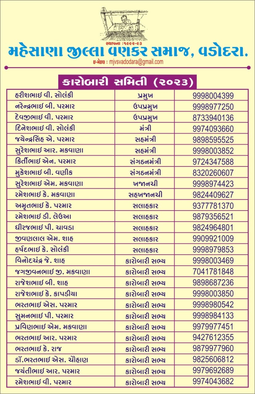 મહેસાણા જિલ્લા વણકર સમાજ: વડોદરા |